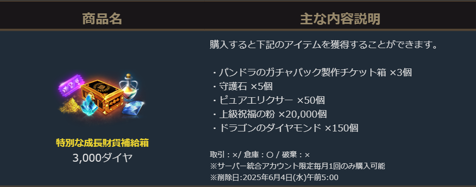■「特別な成長財貨補給箱」の販売を開始しました。