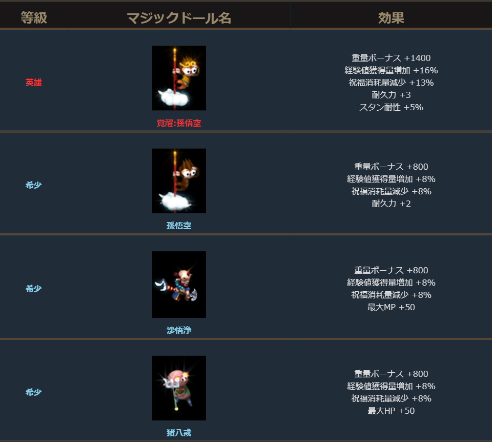 ※アイテムの詳細説明はゲーム内TIPよりご確認ください。