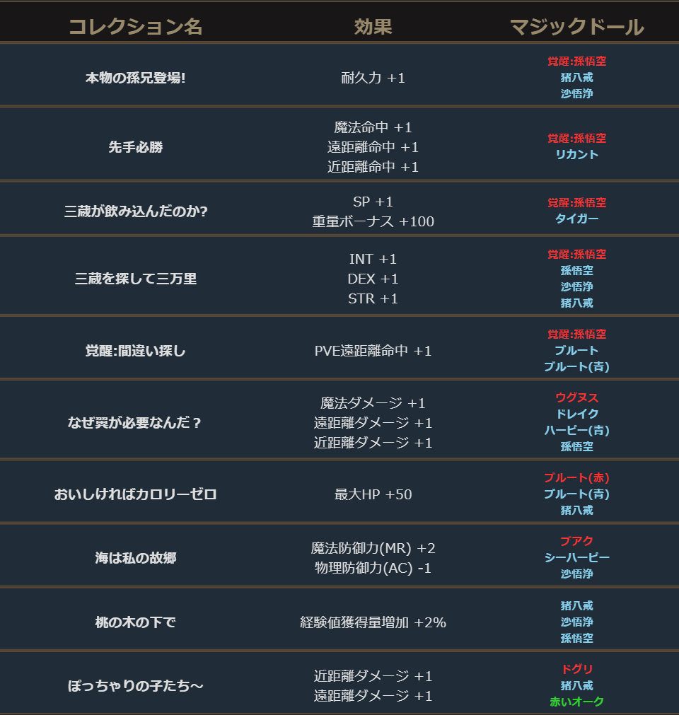 新規マジックドールの追加に伴い、コレクションも新規に追加されました。