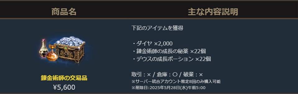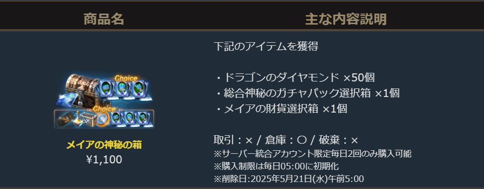 販売期間:2025年4月30日(水)定期メンテナンス後~2025年5月14日(水)定期メンテナンス前まで