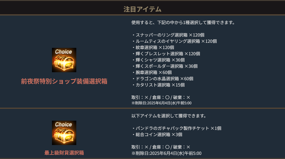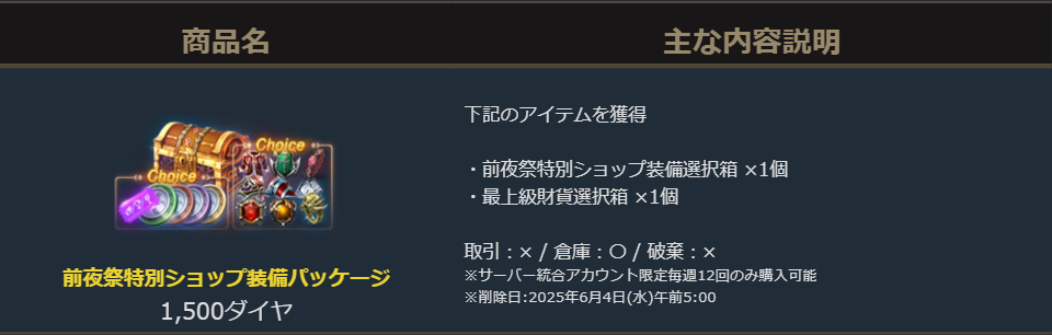 2025年5月14日より販売を開始しました「前夜祭特別ショップ装備パッケージ」のご案内を申し上げます。