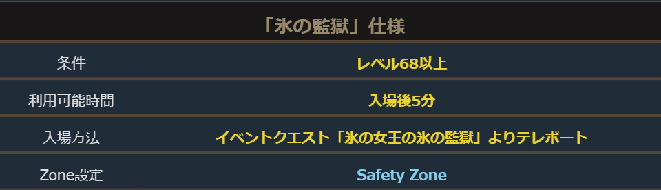 「氷の監獄」はレベル68以上のキャラクターが入場できるダンジョンになっています。