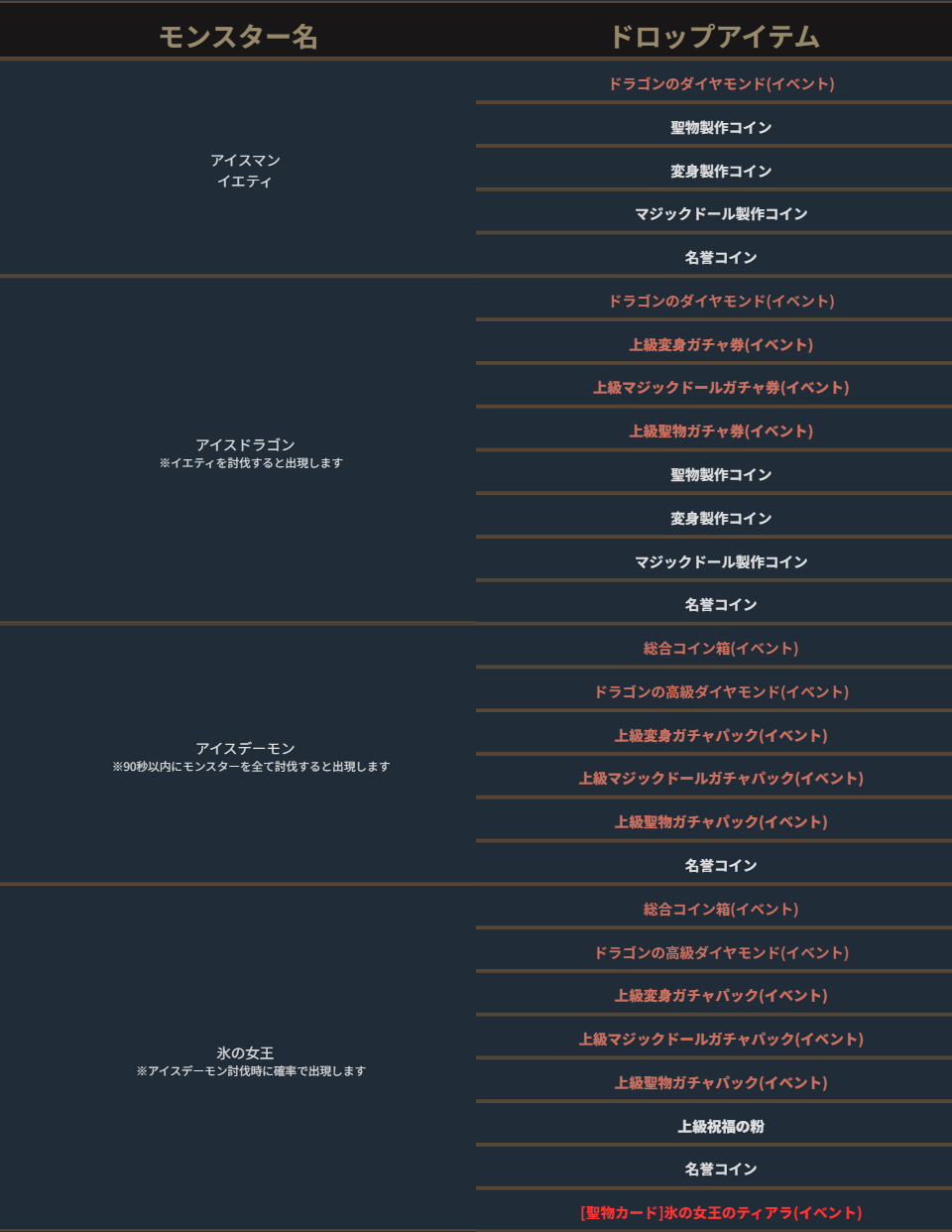 「アイスドラゴン」のドロップリストに誤りがあったため、下記の通り修正を行いました。(誤)