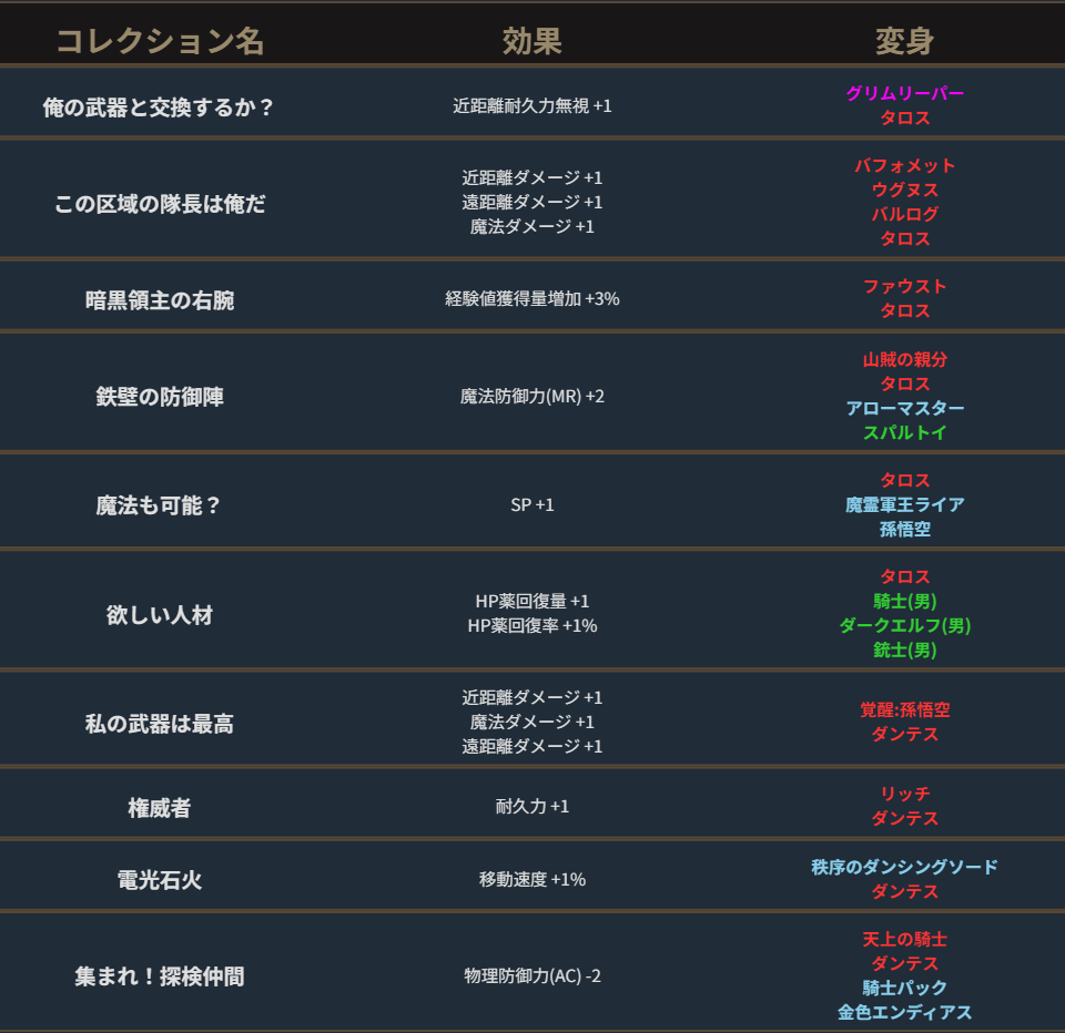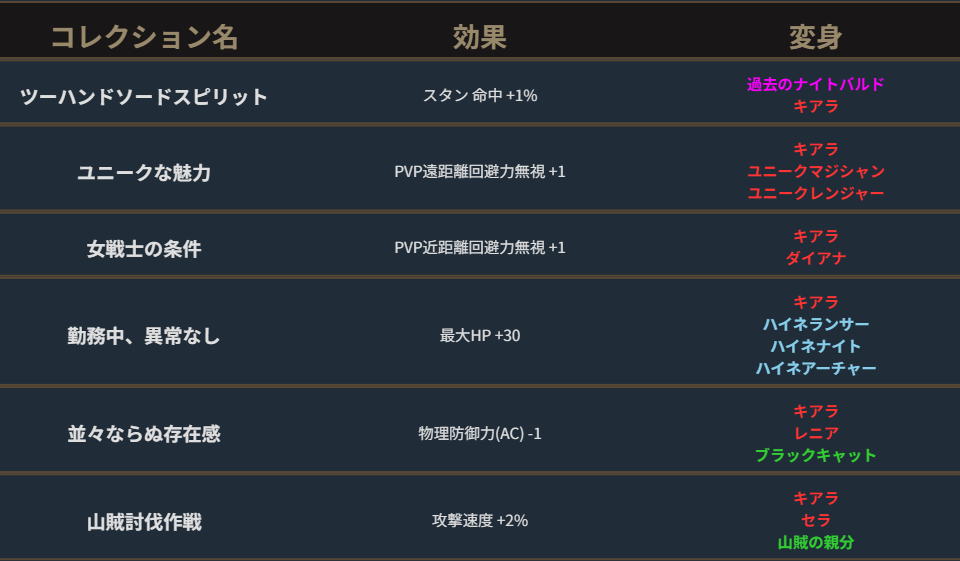 また、既存変身コレクションとなる「覚醒:三角関係」のコレクション効果発揮には、海外と同様にリズの「効果覚醒」も必要となるように変更されます。