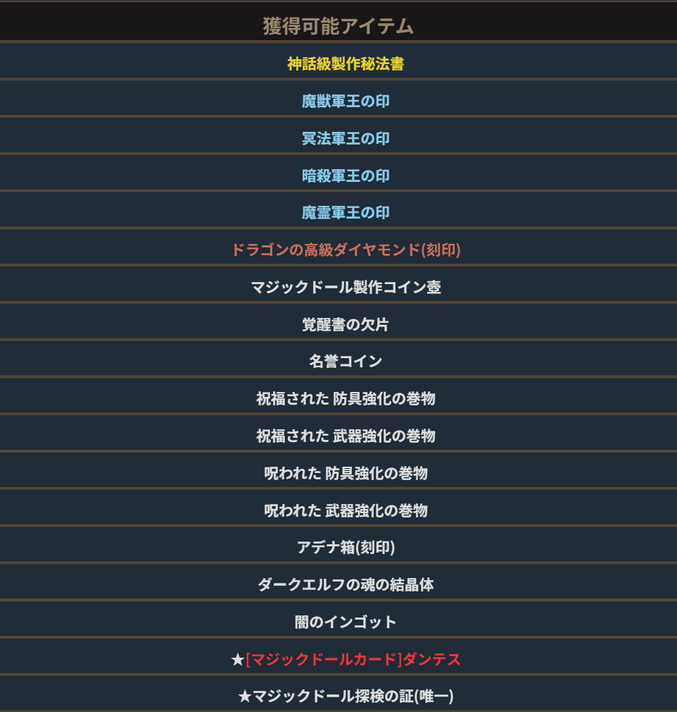 ※「★」マークが付いたアイテムは覚醒レベルがLv20に達したマジックドールで探検を行う場合のみ獲得が可能です。