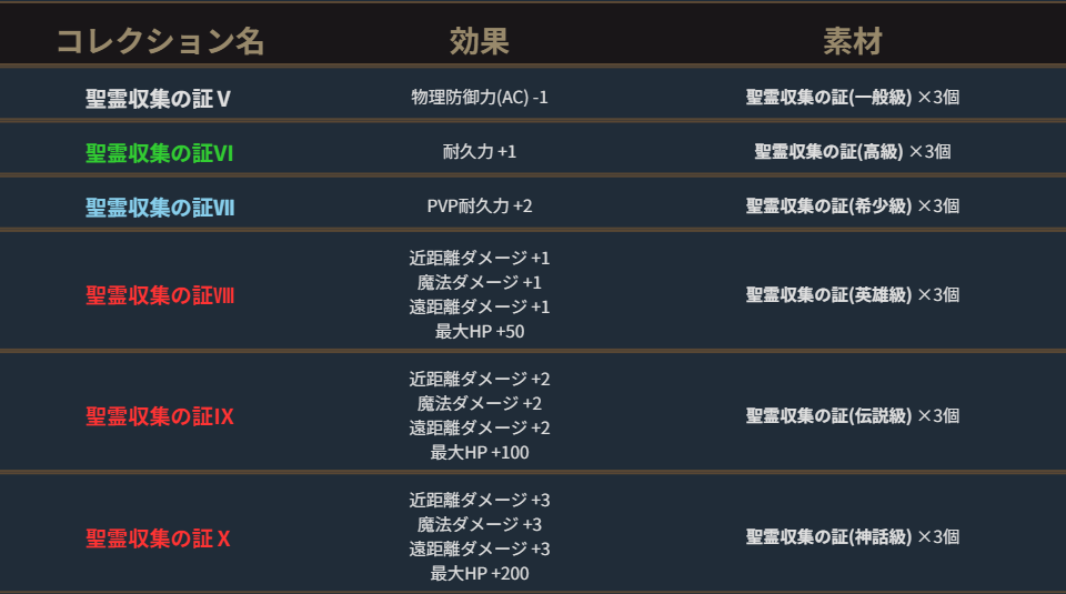 聖霊収集で獲得出来る「聖霊収集の証」のコレクションを追加しました。