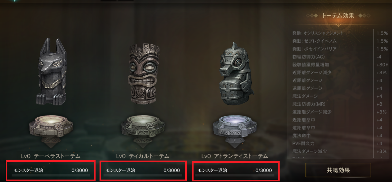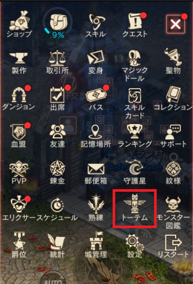 トーテムシステムはゲーム内メニュー>「トーテム」から確認することができます。