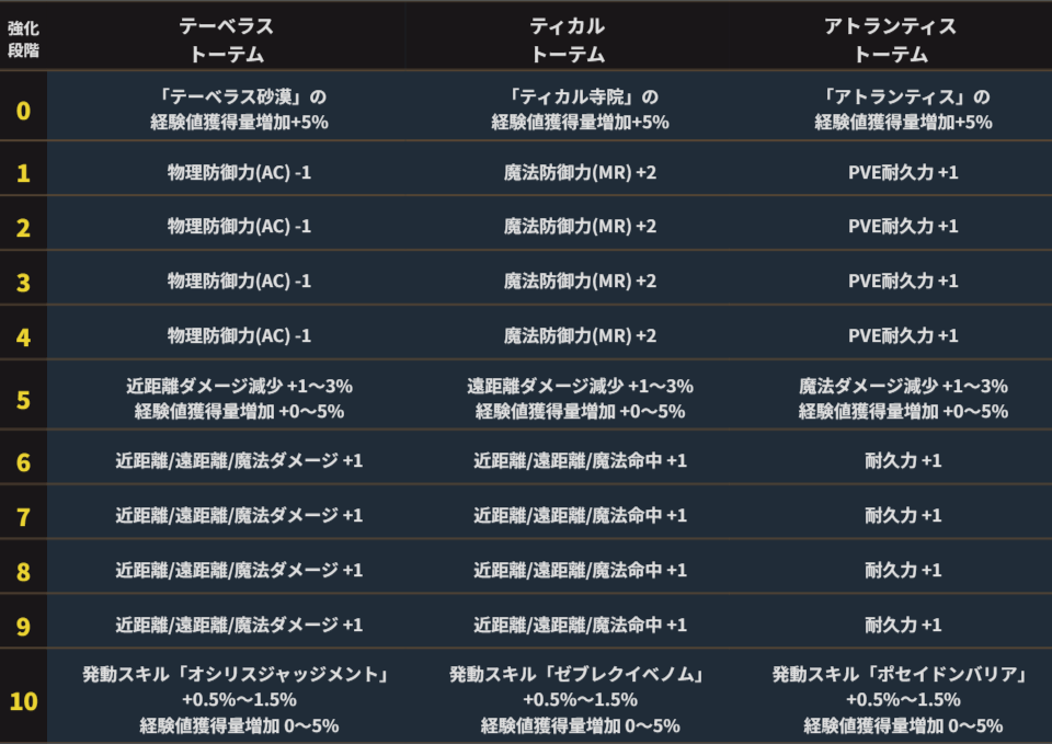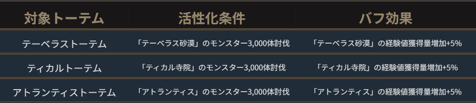 トーテムレベルの合計が強化20を達成で、ダメージ増加が合計+2%となり、最大となる強化30達成で合計+4%まで効果を得ることができます。
