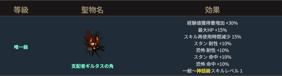 唯一聖物「支配者ギルタスの角」を追加しました。