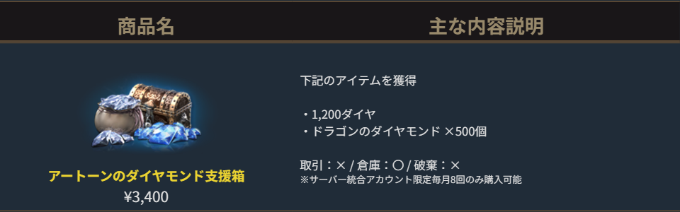 1,200ダイヤと「ドラゴンのダイヤモンド」500個がセットになったお得なパッケージです。
