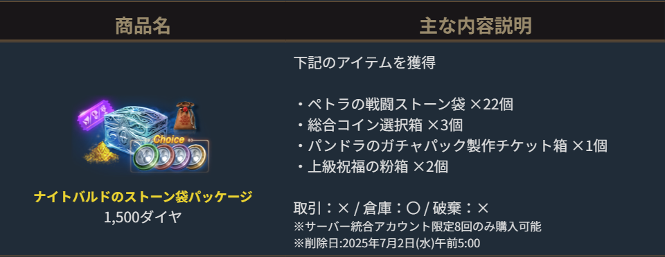 製作素材に使用できる「ペトラの戦闘ストーン袋」と一緒に「総合コイン選択箱」など、様々なアイテムが獲得可能です。