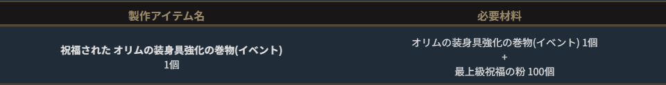 さらに、一定期間中「祝福された オリムの装身具強化の巻物(イベント)」の製作も可能となります。