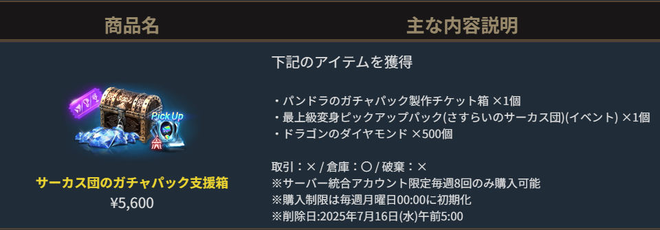 2025年6月25日より販売を開始しました「サーカス団のガチャパック支援箱」のご案内を申し上げます。