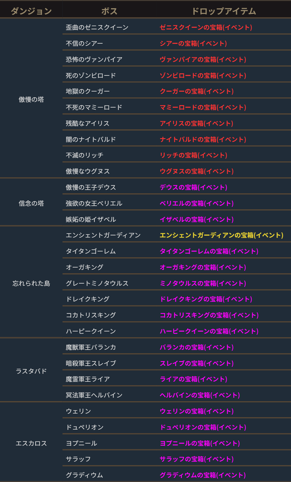 期間中、特定のワールドダンジョンに登場するボスモンスターからの一部ドロップアイテムが100%ドロップします。