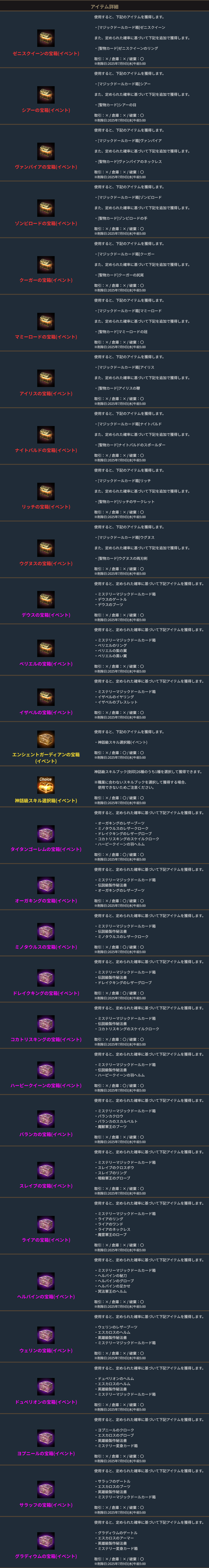 ※一部アイテムは未使用の場合、一定期間経過後に削除されることがあります。詳細はゲーム内TIPをご確認ください。