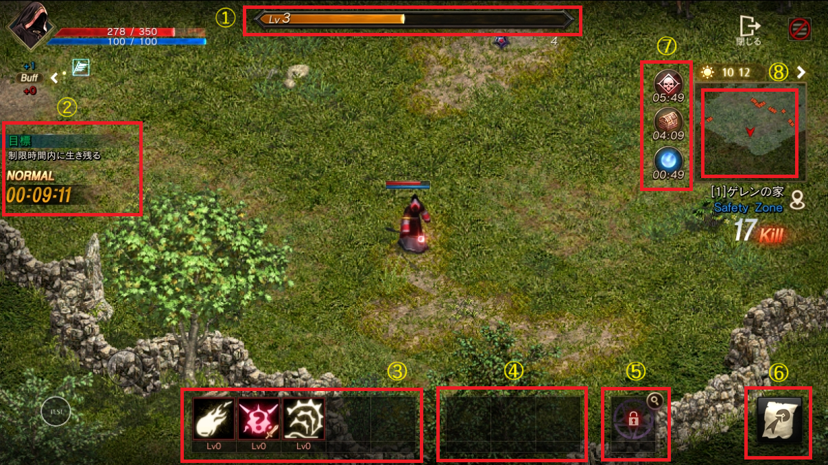 「オリムの痕跡」中に出現するモンスターを倒し、レベルアップをする毎にランダムで選出されたスキルから1種類獲得する事が可能です。