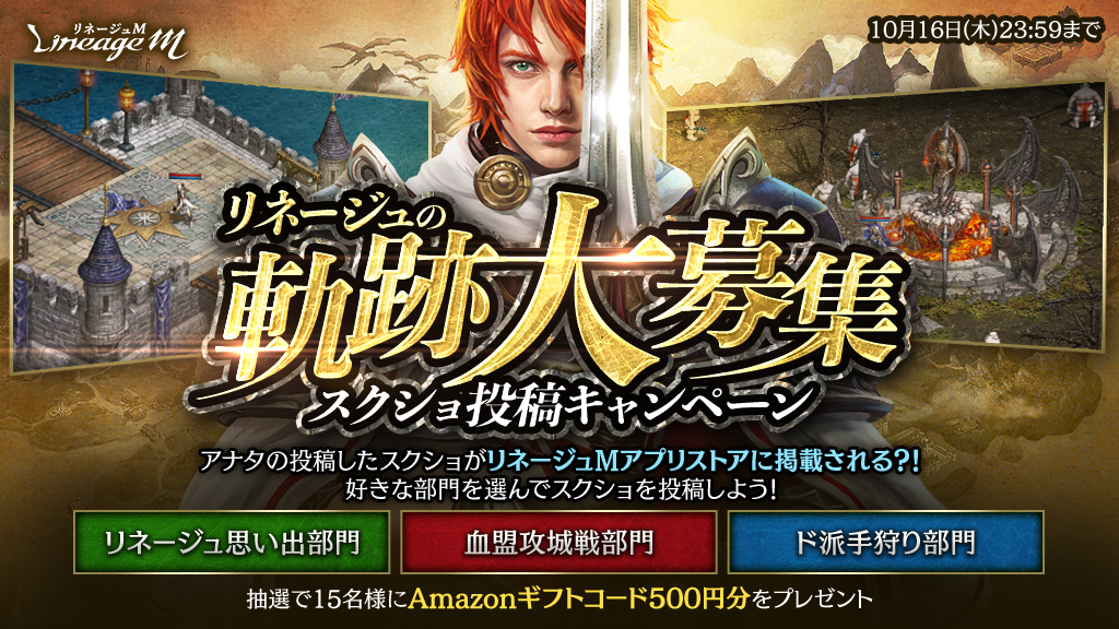 投稿する際は、ハッシュタグ #リネージュ思い出部門 をつけて投稿してください。