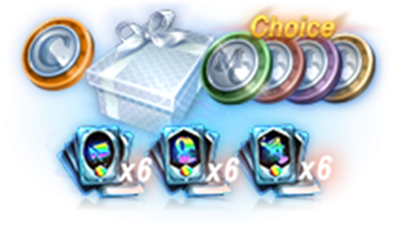 「ドラゴンのダイヤモンド600個」と各種「最上級ガチャパック6個」と「総合コイン選択箱6個」、更に様々なアイテムを製作可能な「名誉の勲章」が250個~10,000個まで定められた確率で入手できる「輝く名誉の勲章箱」が獲得できるパッケージです。